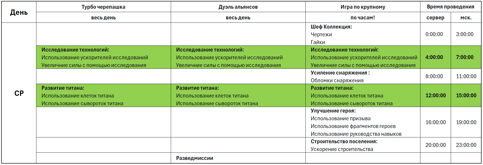 Расписание мероприятий на по дням